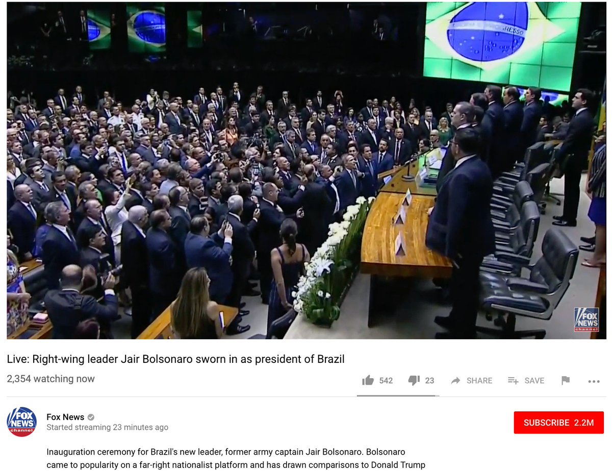 The only international English-language channel livebroadcasting Jair Bolsonaro's inauguration? Fox News.