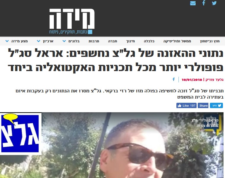 חשיפת 'מידה': תכניתו של אראל סג"ל בגל"צ פופולארית יותר מזו של רזי ברקאי, יעל דן, רינו צרור ואילנה דיין *ביחד*. בגלי צה"ל ניסו להסתיר את הנתונים ועברו על חוק חופש המידע. הנתונים נמסרו בסופו של דבר רק בעקבות איום בעתירה לבית משפט. לכתבה המלאה: http://goo.gl/xwyiVf pic.twitter.com/QZKdonNK93