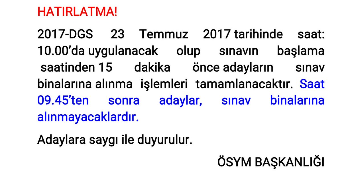2017-ÖSYS Adaylarının Dikkatine! (14.07.2017) http://www.osym.gov.tr/TR,13268/2017-osys-adaylarinin-dikkatine-14072017.html …