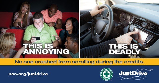 Some screen time can be deadly. Learn more at http://www.nsc.org/justdrive