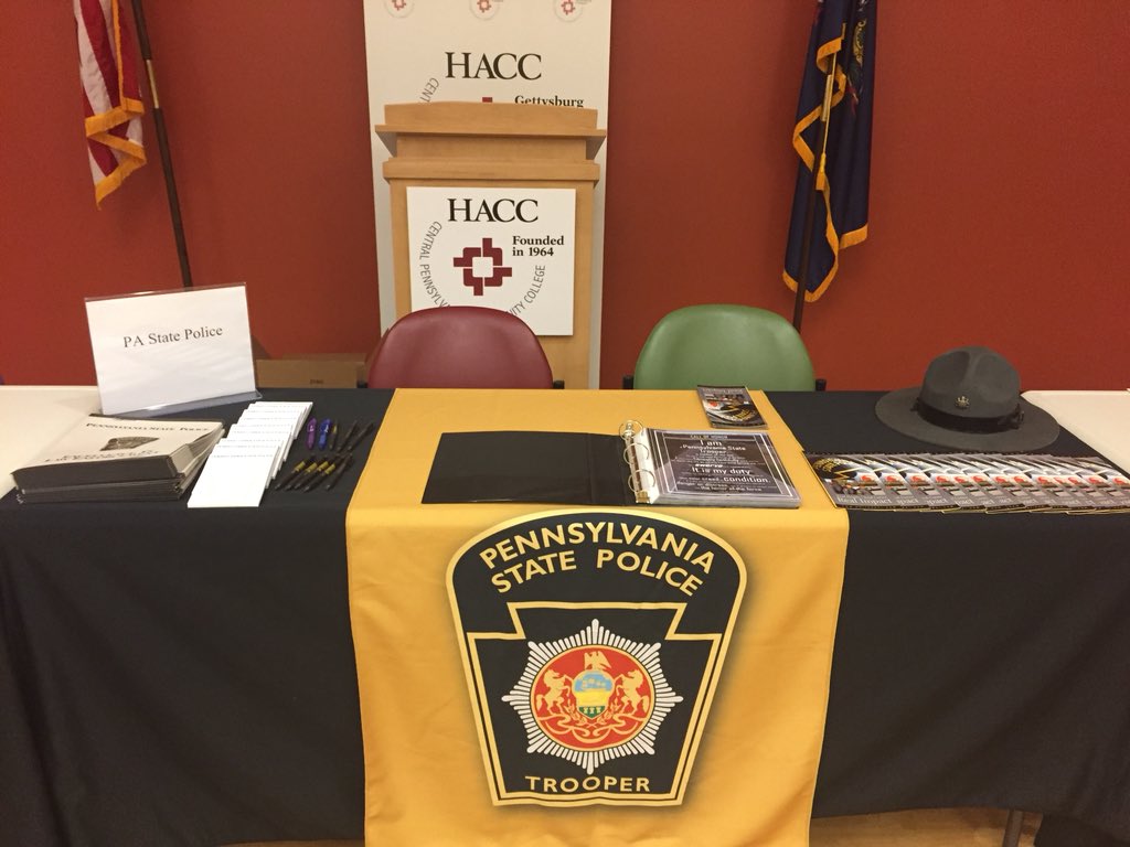 PSP Gettysburg: This morning from 9:00-12:00: Criminal Justice Discovery Day at HACC Gettysburg!