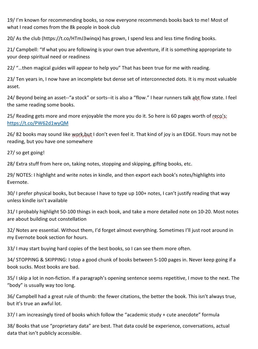 I’m often asked how I read so much and how I choose books. So, my I’ll try my first tweet storm...