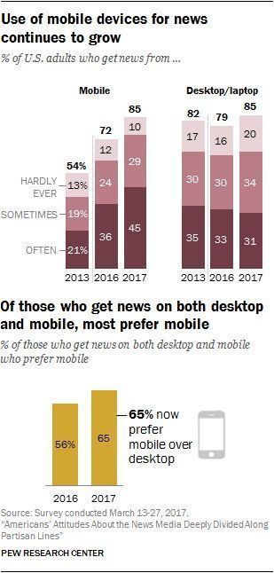 Mobile news consumption in the U.S. has risen rapidly in recent years