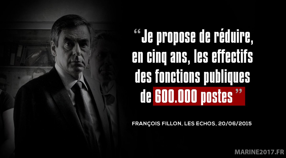 11. , c'est 600 000 postes en moins dans la fonction publique ! Pour un État fort, optez pour !