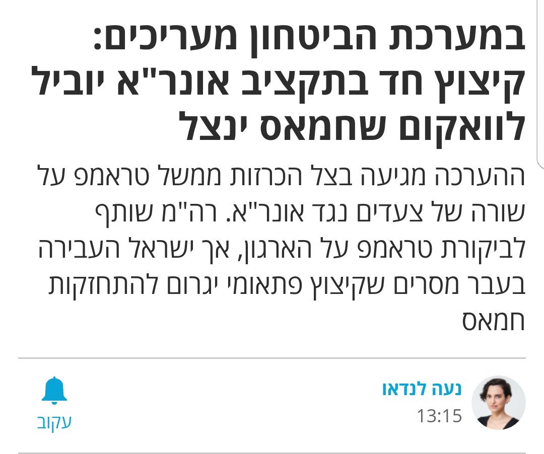 איך גורמים צבאיים מדברים בעילום שם בגנות ממשל ארה"ב ומדיניות הממשלה בנושא הפליטים הפלשתינים הפיקטיבים? די כבר. נמאס. מה ז"א, "המדיניות האמריקנית עלולה להצית את השטח"? אז שצה"ל יתמודד. זה התפקיד שלכם. תעשו אותו לשם שינוי.