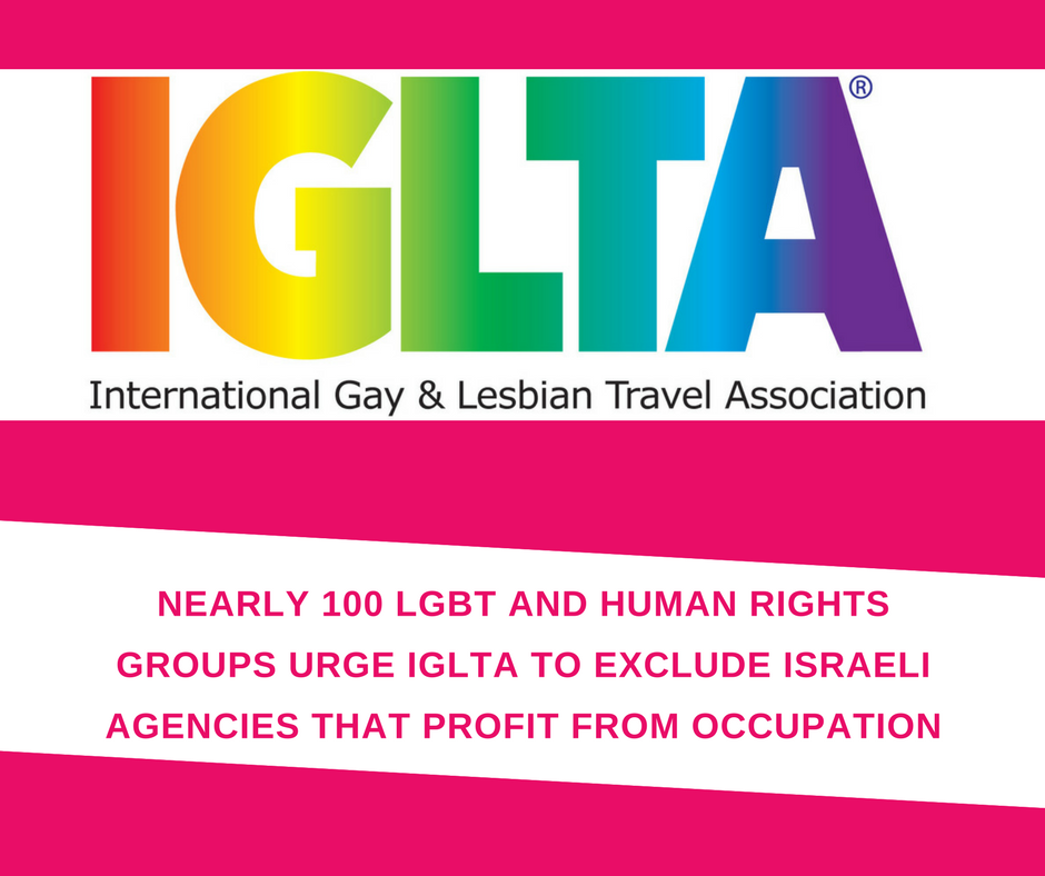 #LGBT and HR groups urge@IGLTA to exclude Israeli travel agencies that profits from the occupation: https://goo.gl/2KCUux pic.twitter.com/6TSRnJdoYY
