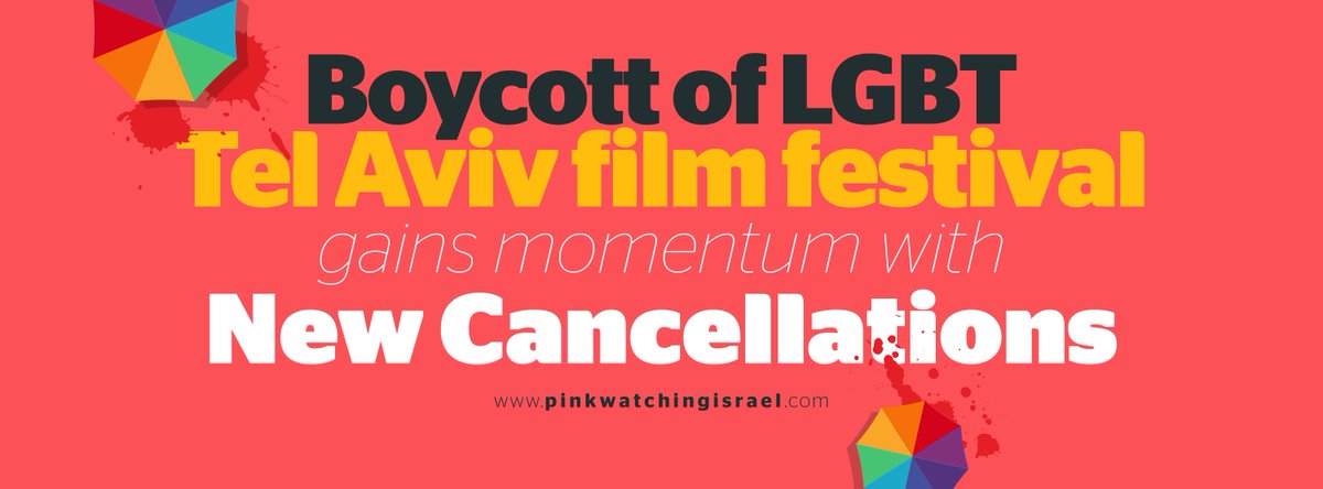 #LGBT film festival gains momentum w/ new cancellations. 9 artists / filmmakers have withdrawn in support of the Palestinian LGBT collective@pinkwatcher's call to boycott. We urge remaining artists to withdraw from#TLVFest. http://bit.ly/2kJY3IS pic.twitter.com/7jBi4kVwIh