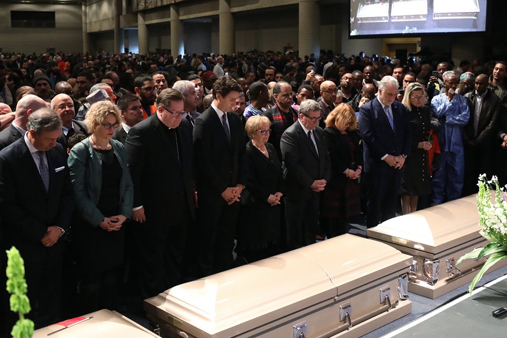 À Montréal, le PM assiste à une cérémonie funéraire pour les victimes de l'attentat commis au Centre culturel islamique de Québec.