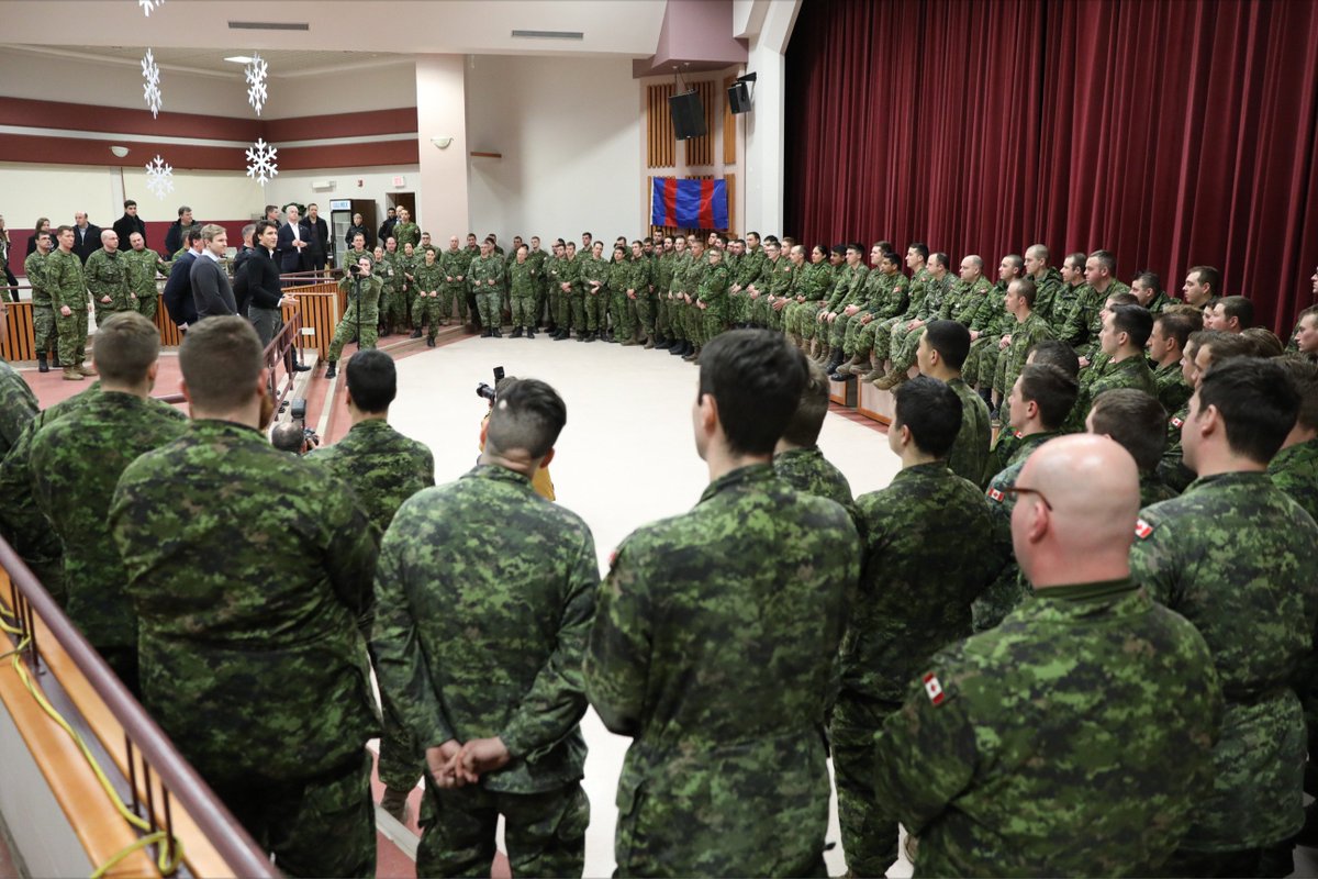 Le PM Trudeau visite le centre des opérations militaires de Lamèque au N.-B. pour remercier le personnel militaire de son aide.