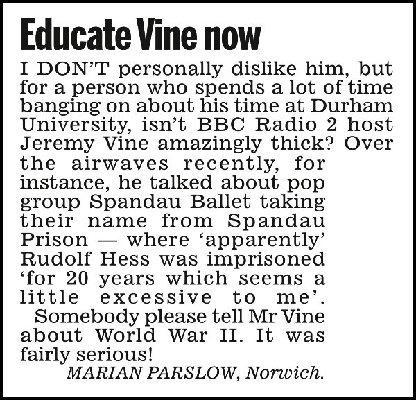 Ever read a letter in a paper and immediately thought Eh? afterwards? Yeah, that's the sort of thing aimed at here. All wastes of stamps / electrons welcome.