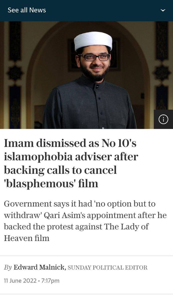 #LadyOfHeaven movie and a friend & admirer of extremist elements in Pakistan has been removed as UK government advisor on “Islamophobia”!pic.twitter.com/mStIIvUzZa
