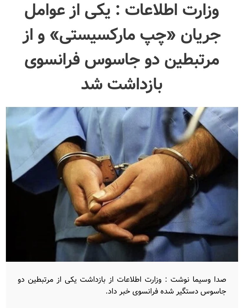 Iran claims a Marxist activist who was co-ordinating with the two detained French Trade Unionists has been arrested and charged with the intention of starting labour unrest in the countrypic.twitter.com/Vekp55LqrH