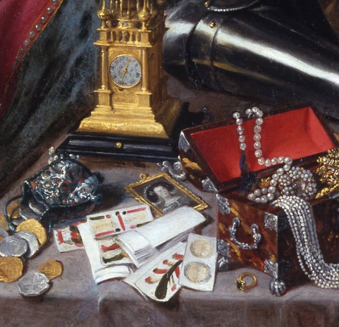 The Knight's cards are on the table, along with other vain and worldly things: detail of Pereda's Dream of the Knight, c. 1650. 2/2pic.twitter.com/prLe7LaPaO