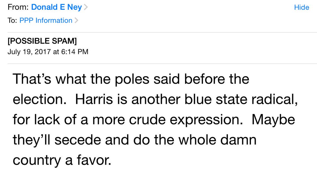 And the angry correspondence we're getting from Trump fans is fixated on the Harris match up...