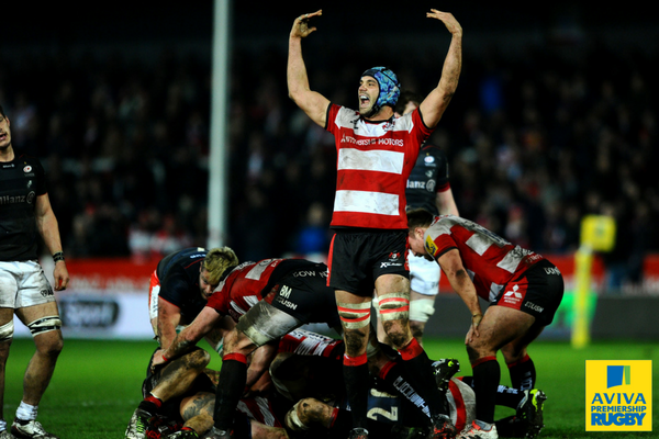 @MT_galarza celebrating victory during the#AvivaPrem match against@Saracens at Kingsholm is our#PicOfTheWeek, chosen by@GettySport.