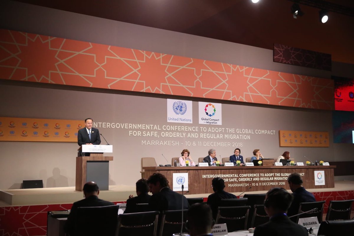 Adoptamos de manera responsable el Pacto Global, documento "no obligatorio" que abre un diálogo multilateral necesario para afrontar los desafíos de la migración, respetando la soberanía de los países, sus políticas migratorias y el trato humanitario al migrante.