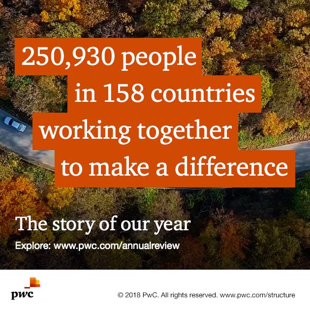 Hard work + dedication of more than 250,000 people = positive impacts for our clients & communities. Details in our Global Annual Review - just launched today: http://pwc.to/GAR2018