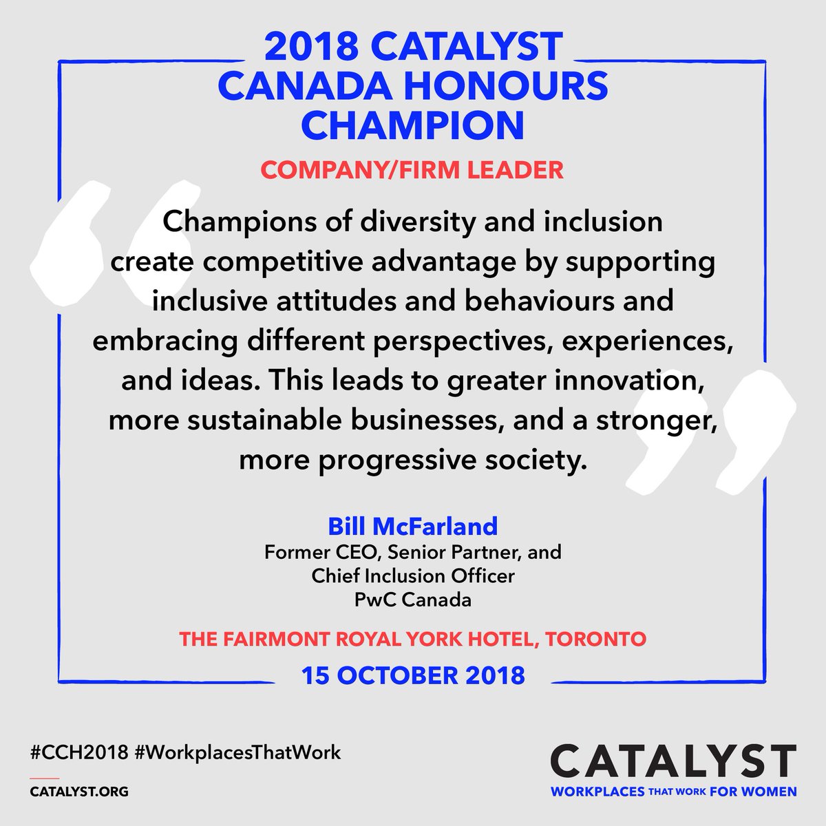 #CCH2018 Champion Bill McFarland of@PwC_Canada! A true change maker, he sets the bar high as a champion of women and inclusion. Learn how Bill helped create positive and sustainable change: http://ow.ly/Ke5z30m6qmD#WorkplacesThatWorkpic.twitter.com/p2f0mRybeI