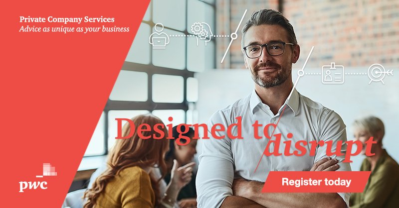 @PwC_Canada's Designed to Disrupt#privateco leaders conference in Surrey, BC on Oct 18th to find out how. Space is limited!#d2d https://pwc.to/2CtVrtx pic.twitter.com/Y7IgGPZLGh