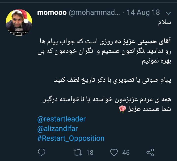 #InviteRestartLeaderToWarsaw#restart_opposition#RestartMIGA@restartleader@alizandifar@Hossein15488486https://twitter.com/AhooAristocrat/status/1092792396046319616 …