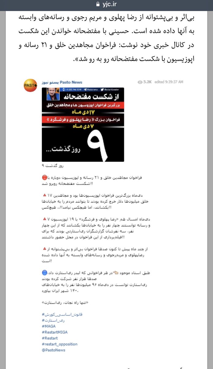 توی این خبری که باشگاه خبرنگاران زده،دوتا برداشت میکنن ازش: اولیش سلطنتیها هستن که میگن:دیدی شکست ما رو گفتن پس اینا با جمهوری اسلامی هستن! دومین برداشت هم ری استارتی ها می کنن که ادمین باشگاه خبرنگاران ری استاریه یا اگه نیست خوشگله خواسته ازما حرف بزنه و خر خودمونه!
