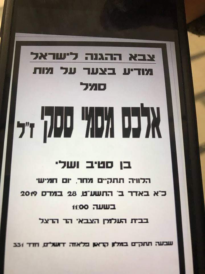 **Retweet** BD"E, military funeral for brave lone soldier Corporal Alex Sasaki O"BM at Har Herzl in on Thursday, March 28, 2019 at 11:00am. His family is flying in from California & can use support & comfort at this difficult time, please attend if you can.