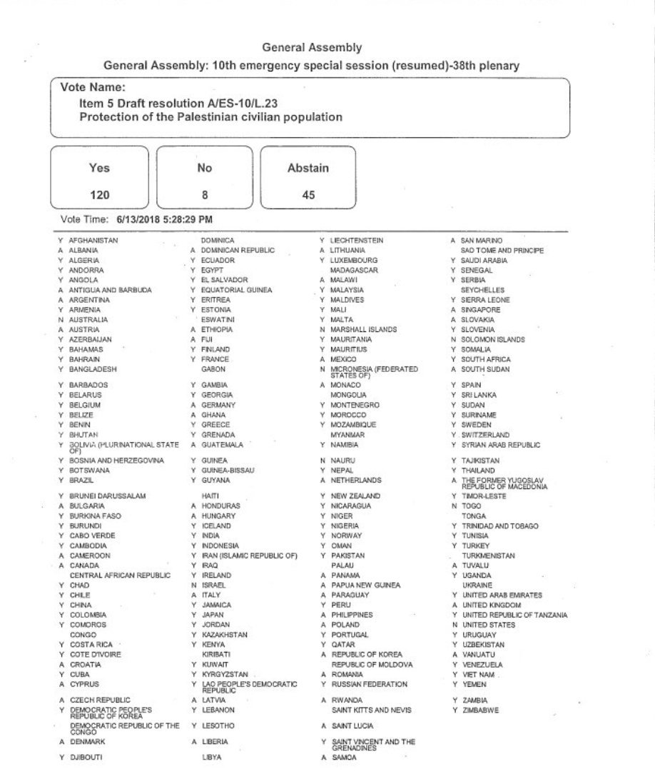 Roll of shame! To all those countries that just either voted Yes or pitifully Abstained on