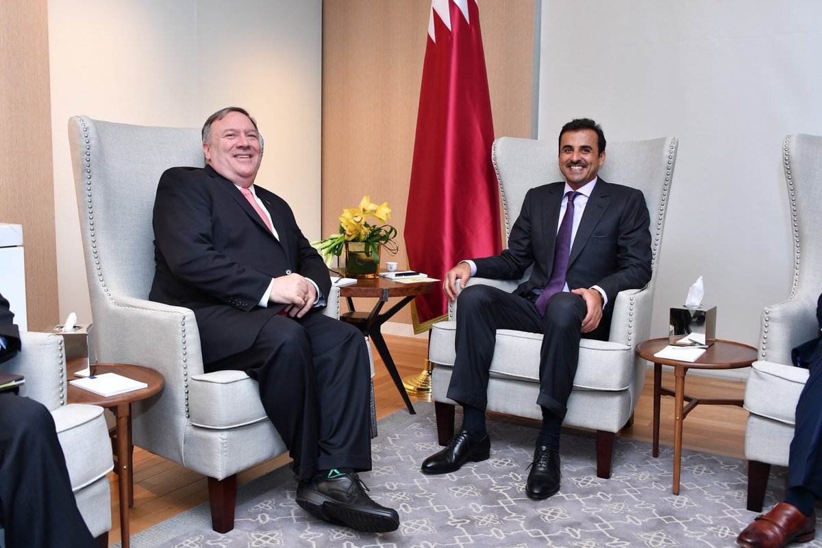 #پمپئو با امیر#قطر در واشنگتن دیدار کرد. قطر میزبان پایگاه "العدید" است که بزرگترین پایگاه آمریکایی در خاورمیانه به شمار میآید.pic.twitter.com/JnhIBQBfYM