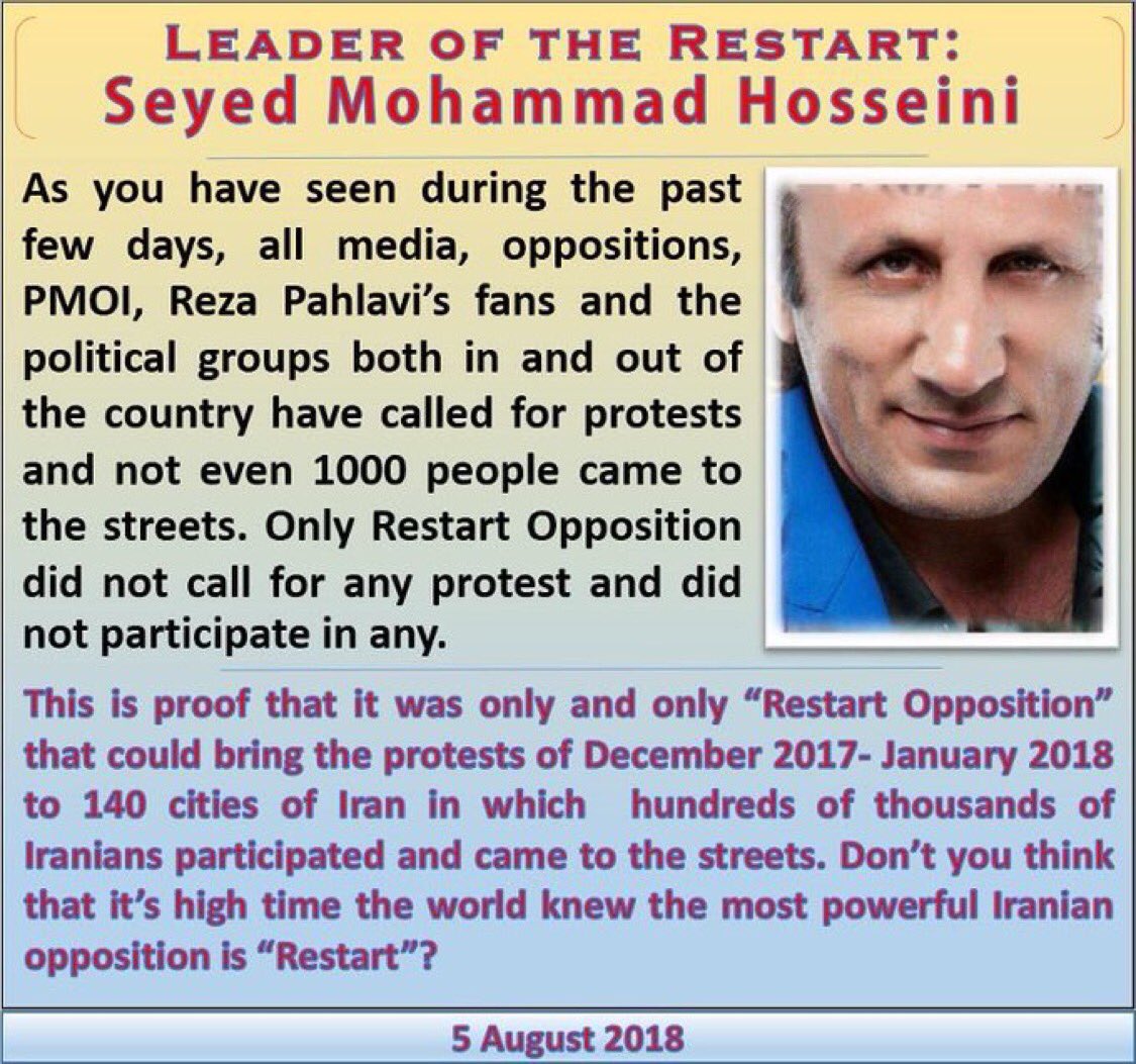 #Restart_Opposition is the only opposition that can change the government in iran and that’s exactly why that all the persian medias has blocked our voice in last two years! Dont do the same!#break_up_boycott_restart_opposition#Trump2020pic.twitter.com/u6xxaofl1W