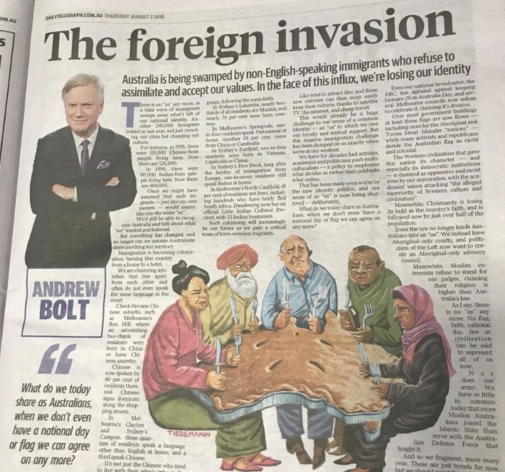 The racism and bigotry that Andrew Bolt peddles goes against our compassionate nature as a country built on migrants. If he wants to talk about ‘losing our identity’ he only need look at his hateful and divisive columns to understand where the problem lies.