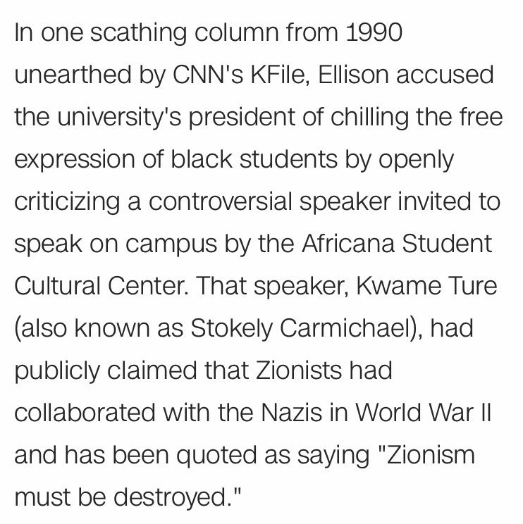 In one column, Ellison defended speaker who said Zionists colluded with Nazis http://www.cnn.com/2016/12/01/politics/kfile-keith-ellison-nation-of-islam/index.html …pic.twitter.com/aQ3UURsjJA