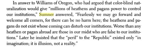 Senator Charles Sumner in 1870, during the first U.S. debate about restricting immigration.