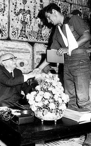 teniente Benjamin Netanyahu le da la mano al presidente israelí Zalman Shazar durante una ceremonia en honor a los soldados de la unidad de comando Sayeret Matkal de la élite que liberó a los rehenes en el secuestro de Sabena Airlinespic.twitter.com/3gHoS047gZ