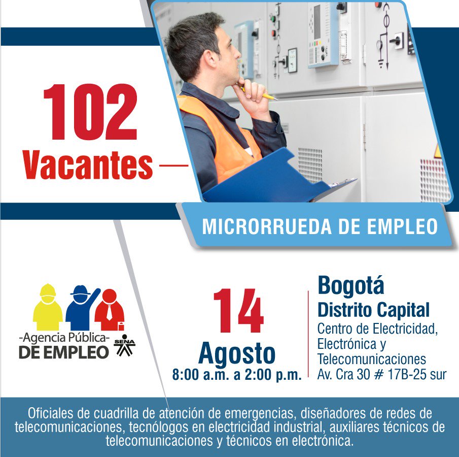 , si buscas una oportunidad laboral y vives en Bogotá, participa hoy con tu hoja de vida en la microrrueda de la del .