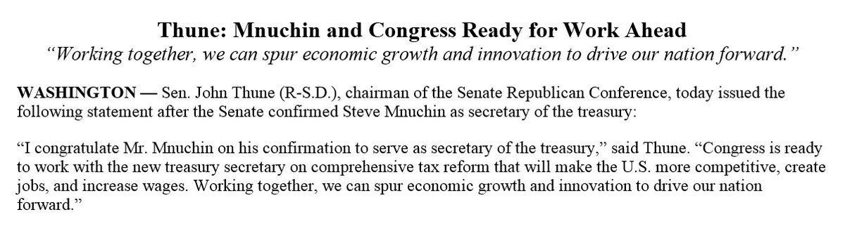 Looking forward to working with Steve Mnuchin as our next secretary.