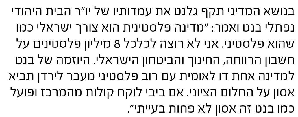 סמוטריץ היום בישראל היום: "אני לוקח אחריות ומחזיר אותנו לעזה. מחיר הדמים יהיה יותר כבד להם מאשר לנו". בצלאל, אתה מוזמן לנסע לעזה יחד עם נערי הגבעות ולנסות לבד להחזיר אותנו לשם עם חזון המדינה האחת שלך. אנחנו נשאר כאן להבטיח את המשך קיומנו כמדינה יהודית ודמוקרטית.