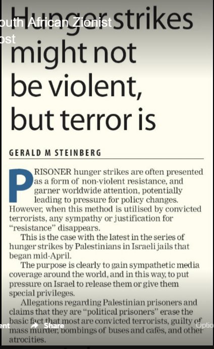 My latest - S. Africa Independent "Hunger Strikes might not be violent, but terror is" https://web.facebook.com/SAZionistFed/photos/pcb.1296342520462439/1296342370462454/?type=3&theater …pic.twitter.com/JBldZQbe79