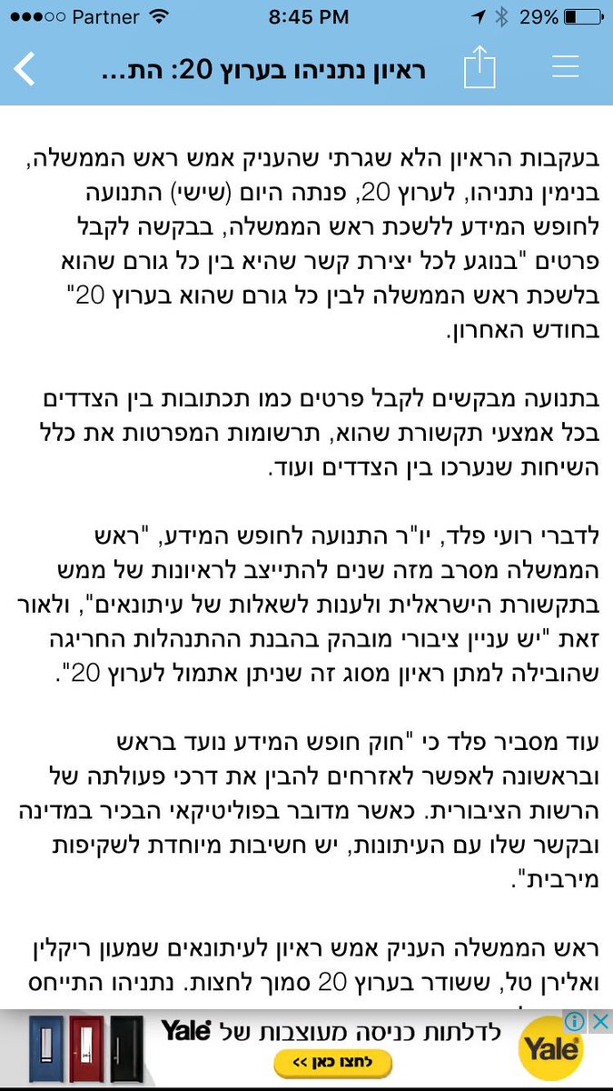 לידיעתכם..יש לתנועה ל׳חופש המידע׳ שהקים דרוקר בעיה עם זה שביבי התראיין.. שילכו לחפש..pic.twitter.com/3NNRmWnxvr