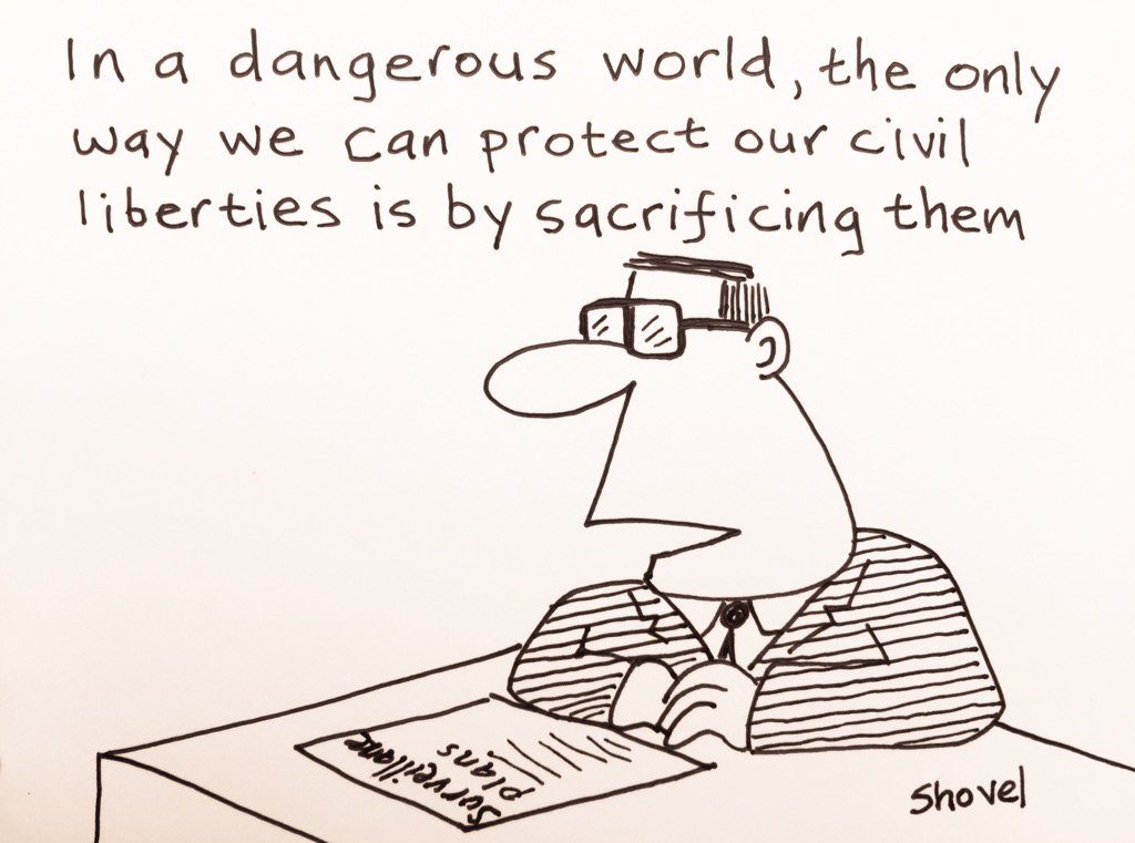 My cartoon - the only way we can protect our civil liberties is to sacrifice them