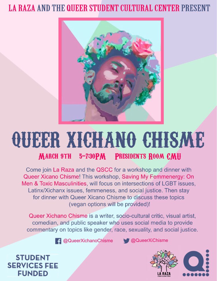 TODAY at 4:30 in CMU 323 learn about the “Connections Between Oppressions” and how our three pronged platform is all connected