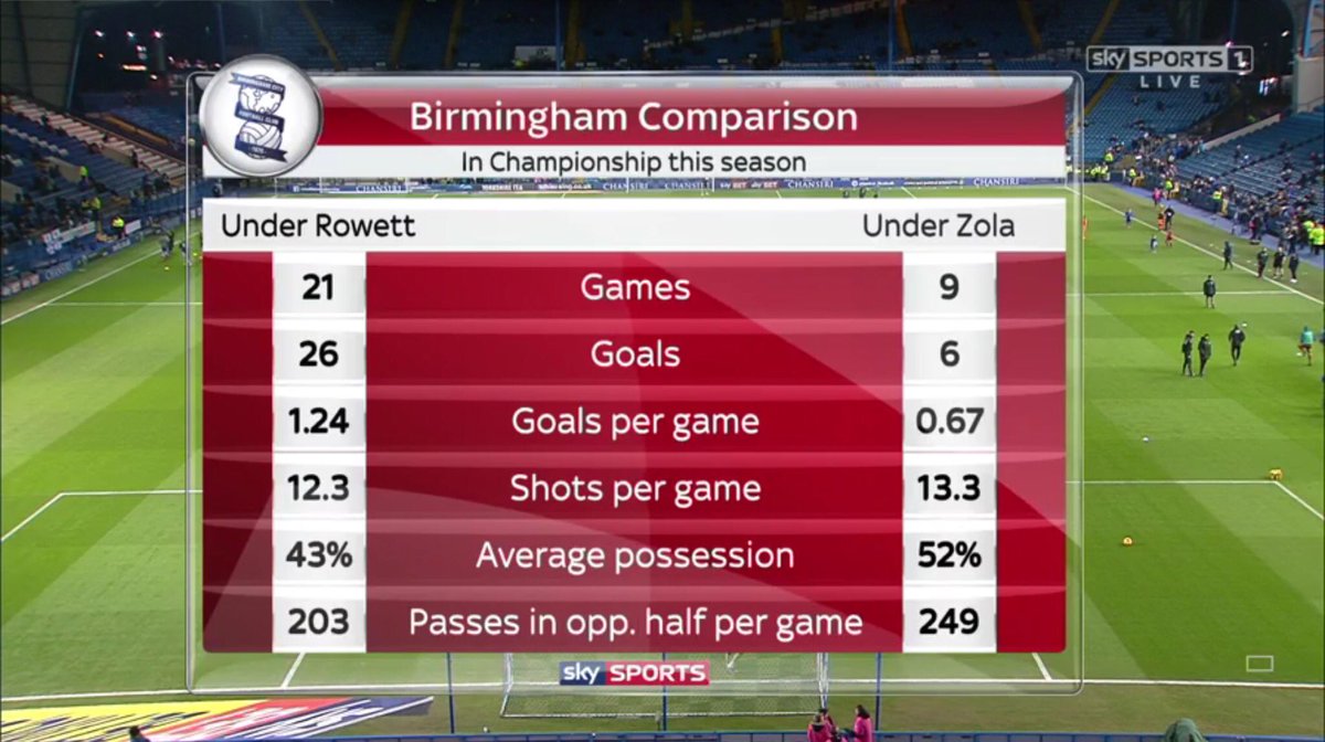 Birmingham were 1 point off 6th place when Gianfranco Zola was appointed as manager. Now 9 points behind 6th placed Sheff Wed
