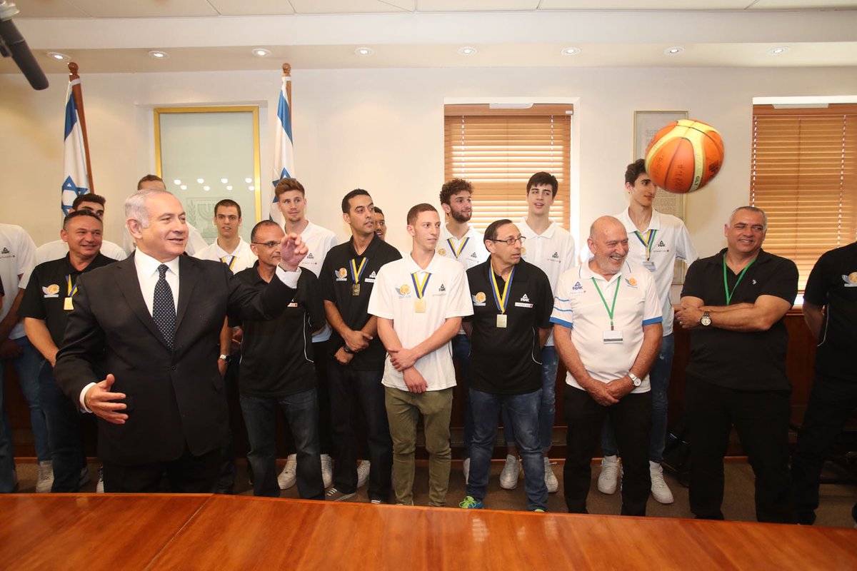 אלופי אירופה: רה"מ נתניהו אירח בלשכתו את נבחרת העתודה בכדורסל (צילום: עודד קרני איגוד הכדורסל)