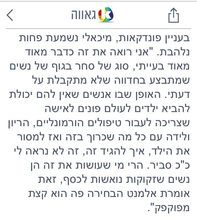 מרב מיכאלי על הפונדקאות, 2013: “זה סוג של סחר בגוף של נשים שמתבצע בחדווה... לא בכדי חברות הפונדקאות הגדולות הן בכל מיני מקומות נכשלים בעולם בהן הנשים מוחלשות באופן דרמטי. גם בישראל התמורה שנשים מקבלות עבור פונדקאות ממש לא בפרופורציה למחיר שהן משלמות בגוף ובנפש על התהליך הזה״ >>pic.twitter.com/SKgAi1hzoA