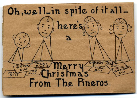 11. When times were hard for the Pinero family in 1933, they used a paper bag to send a cheap & cheerful holiday card