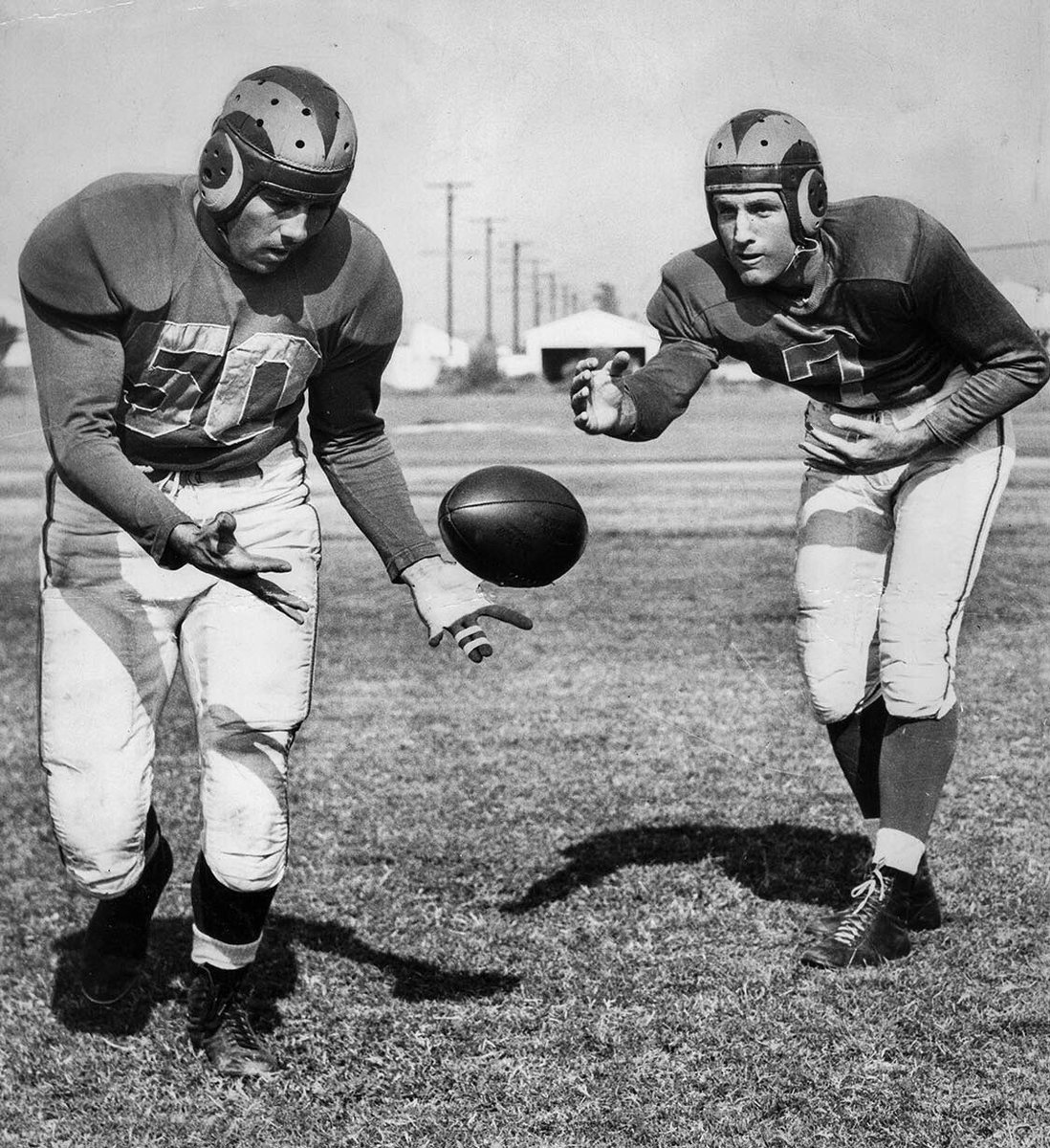 Here is QB (right) & HB Vitamin T. Smith in preseason on Aug. 25, 1949.