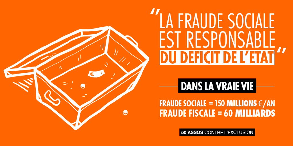 La fraude sociale, c'est 150 millions/an et la fraude fiscale, c'est 60 milliards/an. Ne nous trompons pas de combat