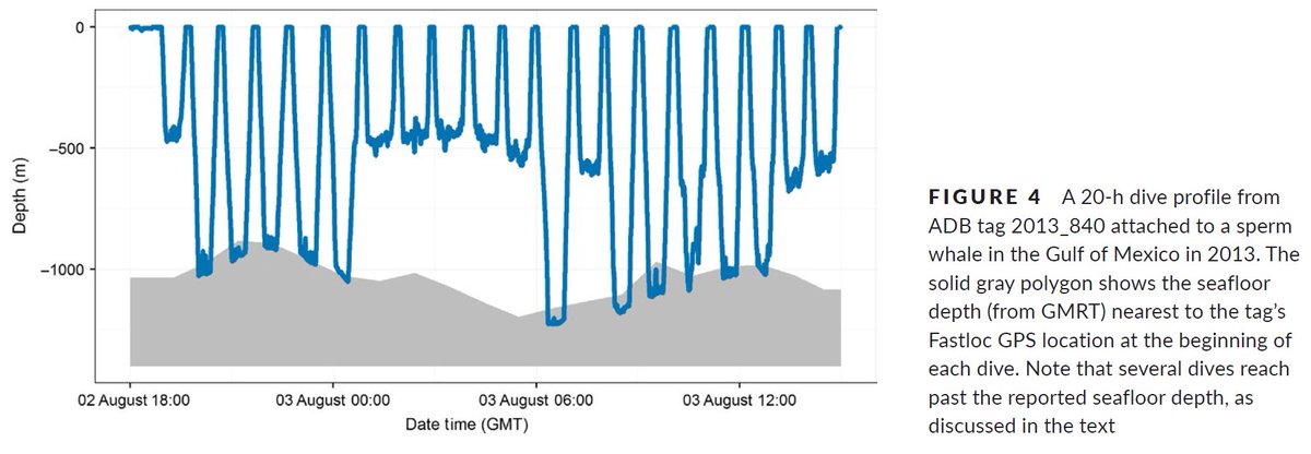 Regular one kilometer deep dives by sperm whales to the ocean floor, revealed by new tags http://onlinelibrary.wiley.com/doi/10.1002/ece3.2649/epdf …pic.twitter.com/F9DVvet6lu