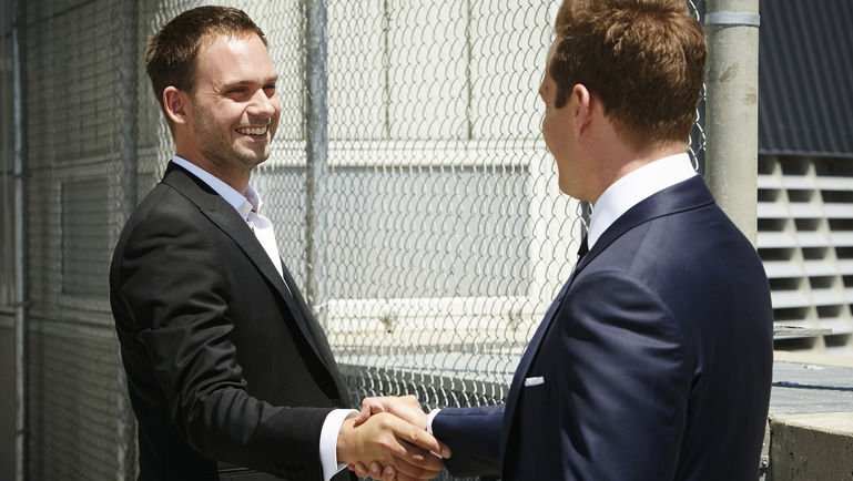 Their firms' rivalry has got Harvey and Robert on edge. Catch up on the action now: http://usanet.tv/SuitsOnline pic.twitter.com/t6Vjp6iDVg
