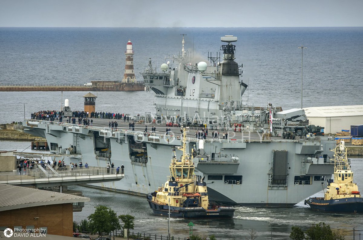 HMS Ocean makes her way out of the Port of Sunderland for the last time...