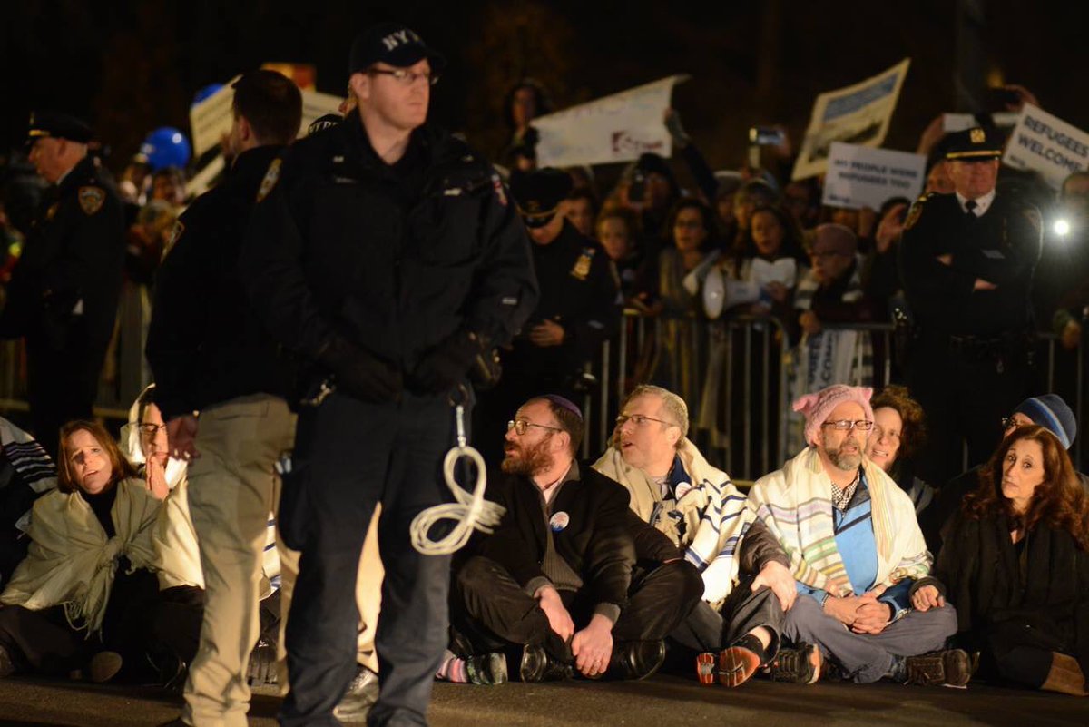 @truahrabbis proud to be one of the 19 rabbis arrested for protesting the Muslim Ban & closed door to refugees outside Trump Hotelpic.twitter.com/ztTtD0WcSc